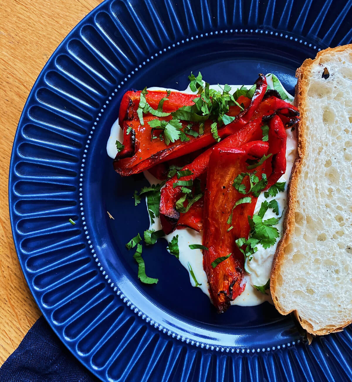 5. Посыпаем зеленью, я люблю кинзу, подаем с деревенским хлебом и страчателлой.